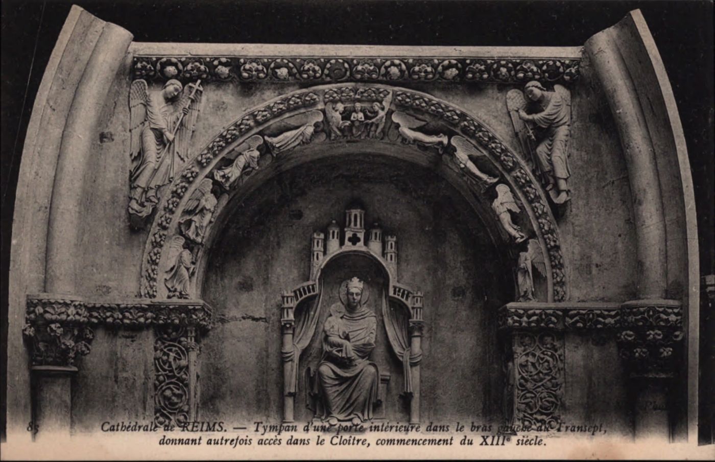 83 Cathedrale de REIMS. - Tympan d'une porte interieure dans le bras du Transept, donnant autrefois acces dand le Cloitre, commencement du XIIIe siecle ND Phot