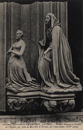 174 Ancienne Charte de CHAMPMOL, pres Dijon. - Statues decorant le Portail de l'Eglise, par Jean de Marville et Nicolas, dit Claus Sluter (XIV siecle) ND Phot