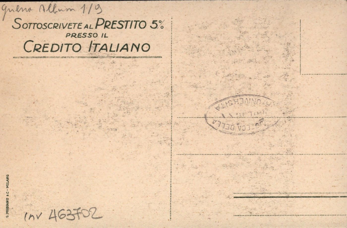 Note: Sul verso: Sottoscrivete al prestito 5% presso il Credito italiano. - Data desunta dalla data di pubblicazione del manifesto con analoga veste grafica