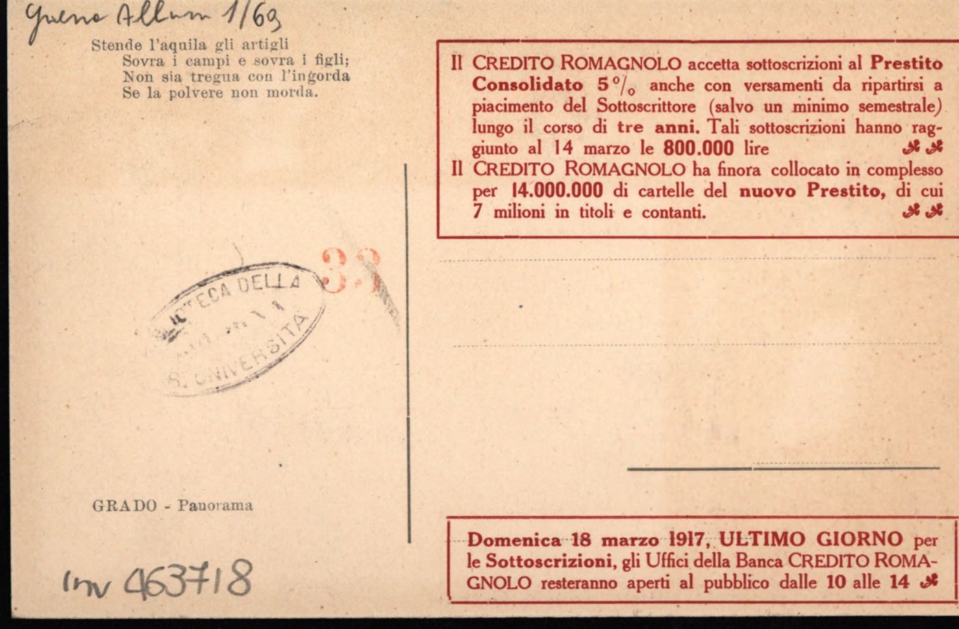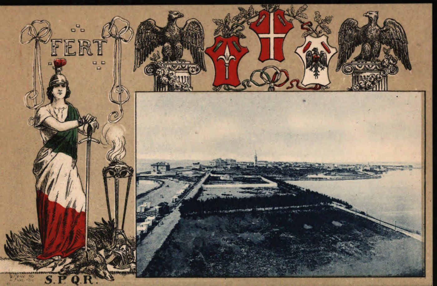 Descrizione: Grado, panorama. - [S.l.: s.n., 1917]. - 1 cartolina illustrata: tipografia, color. ; 90x140 mm.