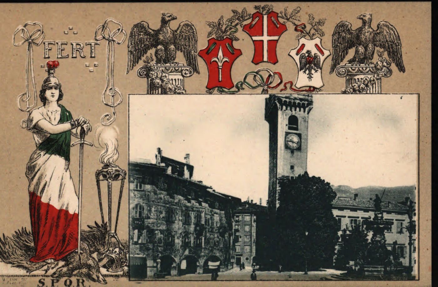 Descrizione: Trento, Piazza del Duomo e Torre Grande. - [S.l.: s.n., 1917]. - 1 cartolina illustrata: tipografia, color. ; 90x140 mm.