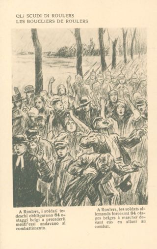 6: Gli scudi di Roulers: a Roulers, i soldati tedeschi obbligarono 84 ostaggi belgi a precederli mentr'essi andavano al combattimento