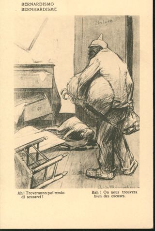 Descrizione: 9: Bernardismo / Louis Raemaekers. - Milano: Società editoriale milanese, [1917]. - 1 cartolina illustrata: fototipia, b/n ; 140x90 mm.