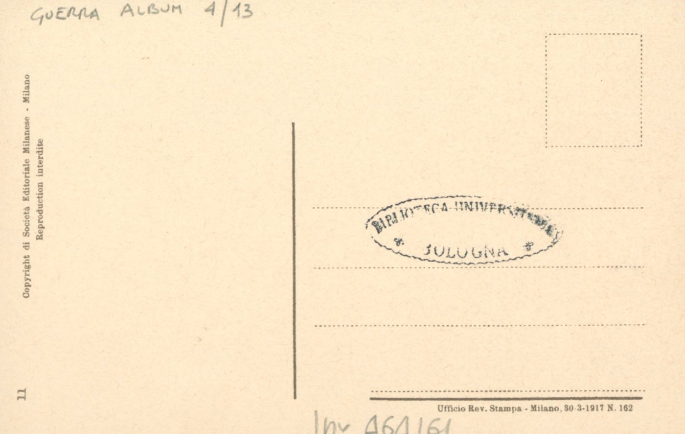 Note: Data dell'Ufficio revisione stampa di Milano sul verso in calce. - Testo in calce all'illustrazione: Ritorno in Patria