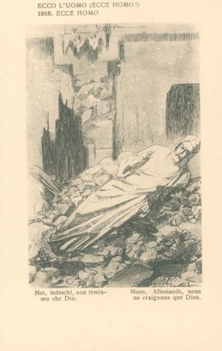 Descrizione: 16: Ecco l'uomo (ecce homo) / Louis Raemaekers. - Milano: Società editoriale milanese, [1917]. - 1 cartolina illustrata: fototipia, b/n ; 140x90 mm.