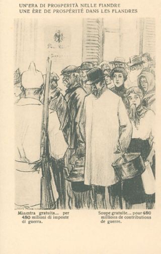 Descrizione: 18: Un'era di prosperità nelle Fiandre / Louis Raemaekers. - Milano: Società editoriale milanese, [1917]. - 1 cartolina illustrata: fototipia, b/n ; 140x90 mm.
