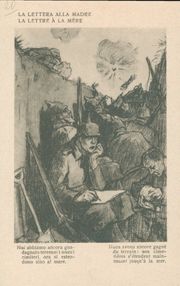 Descrizione: 20: La lettera alla madre / Louis Raemaekers. - Milano: Società editoriale milanese, [1917]. - 1 cartolina illustrata: fototipia, b/n ; 140x90 mm.