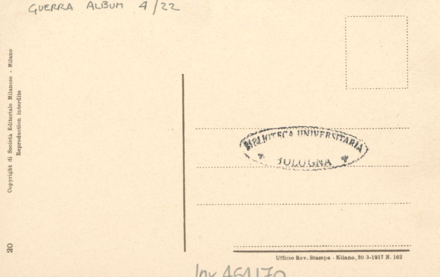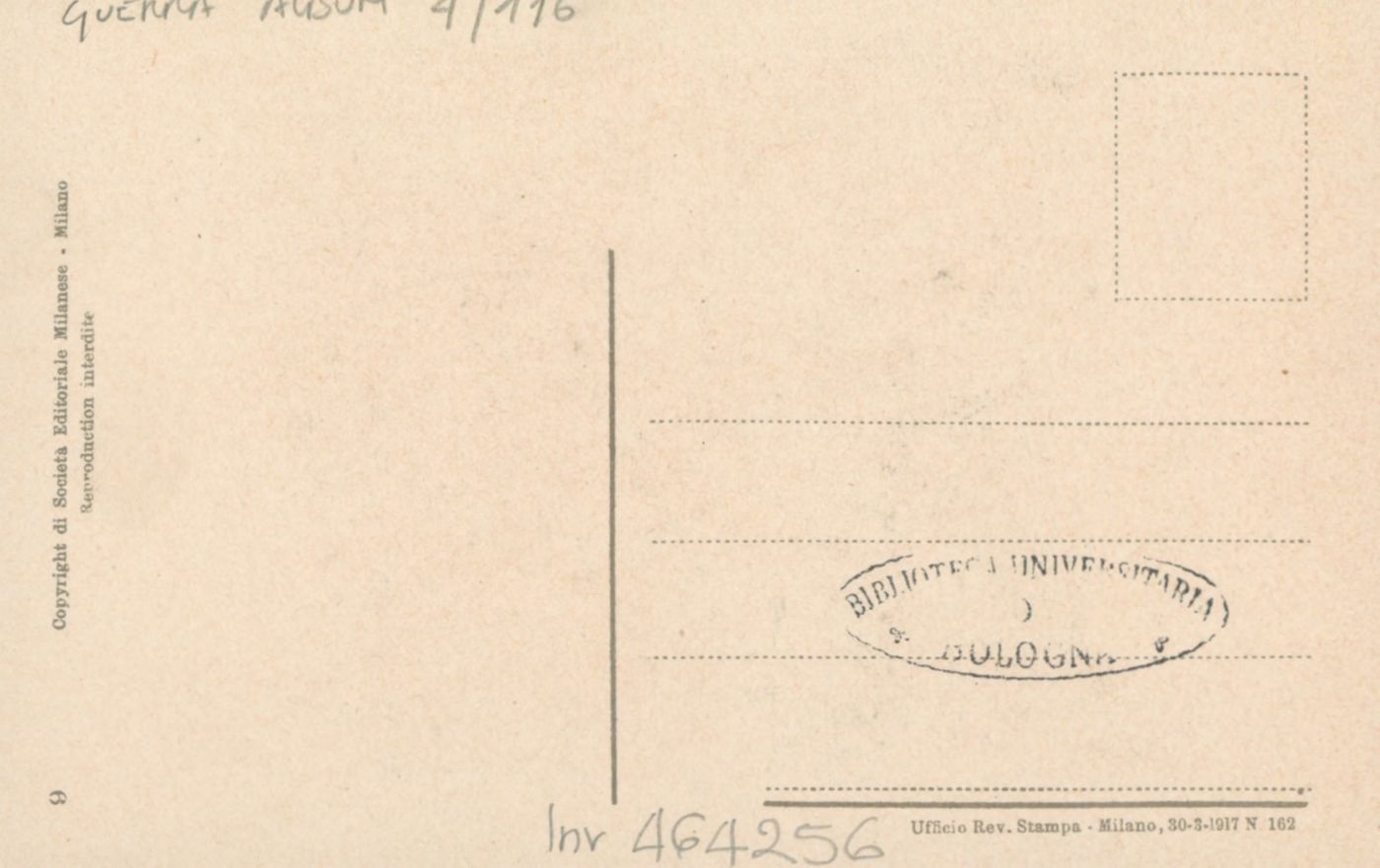 Note: Data dell'Ufficio revisione stampa di Milano sul verso in calce. - In calce all'illustrazione: Noi abbiamo ancora guadagnato terreno: i nostri cimiteri, ora si estendono sino al mare