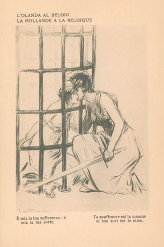 Descrizione: 37: L'Olanda al Belgio / Louis Raemaekers. - Milano: Società editoriale milanese, [1917]. - 1 cartolina illustrata: fototipia, b/n ; 140x90 mm.