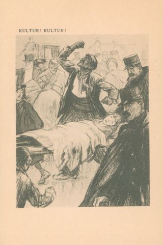 Descrizione: 38: Kultur! Kultur! / Louis Raemaekers. - Milano: Società editoriale milanese, [1917]. - 1 cartolina illustrata: fototipia, b/n ; 140x90 mm.