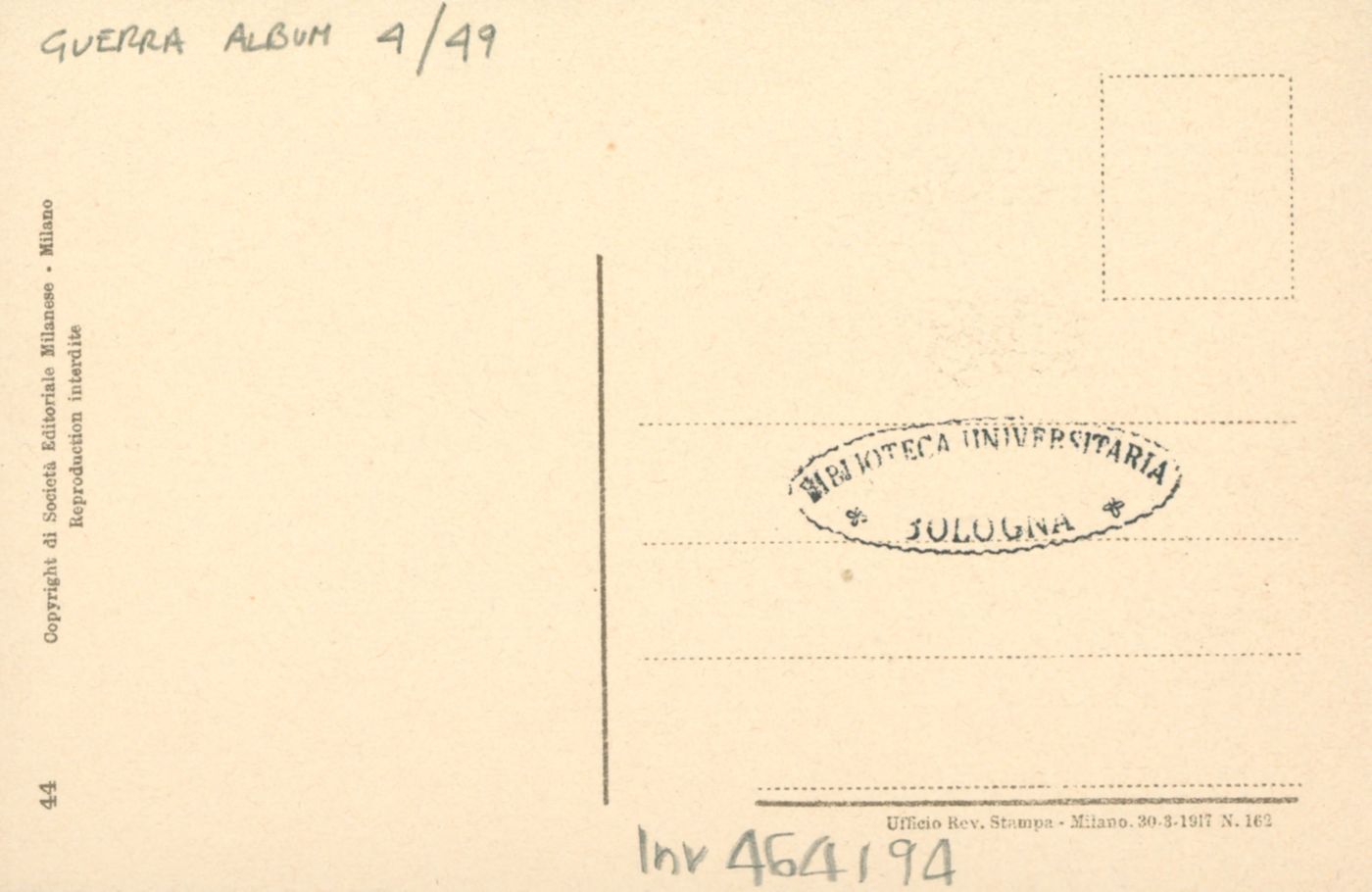 Note: Data dell'Ufficio revisione stampa di Milano sul verso in calce. - Testo in calce all'illustrazione: Tu vuoi farmi credere che mi renderai il mio piccino , ma io so invece che lo riprenderò coi miei denti