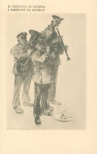 Descrizione: 47: Il prestito di guerra / Louis Raemaekers. - Milano: Società editoriale milanese, [1917]. - 1 cartolina illustrata: fototipia, b/n ; 140x90 mm.