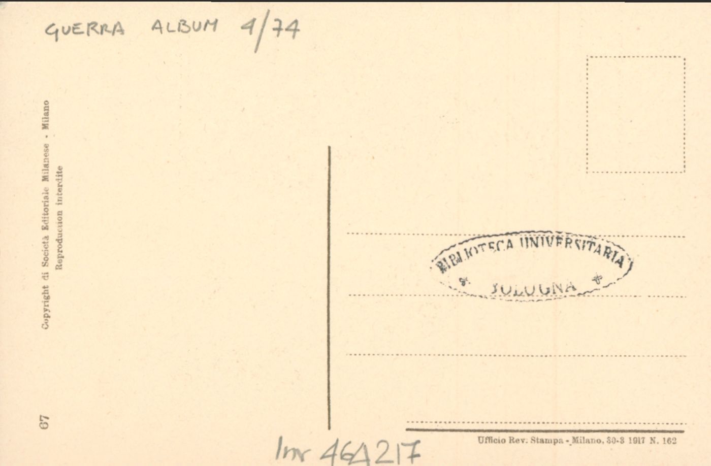 Note: Data dell'Ufficio revisione stampa di Milano sul verso in calce. - Testo in calce all'illustrazione: Sei tu, mamma?