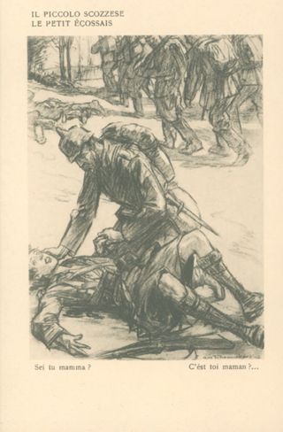 Descrizione: 67: Il piccolo scozzese / Louis Raemaekers. - Milano: Società editoriale milanese, [1917]. - 1 cartolina illustrata: fototipia, b/n ; 140x90 mm.