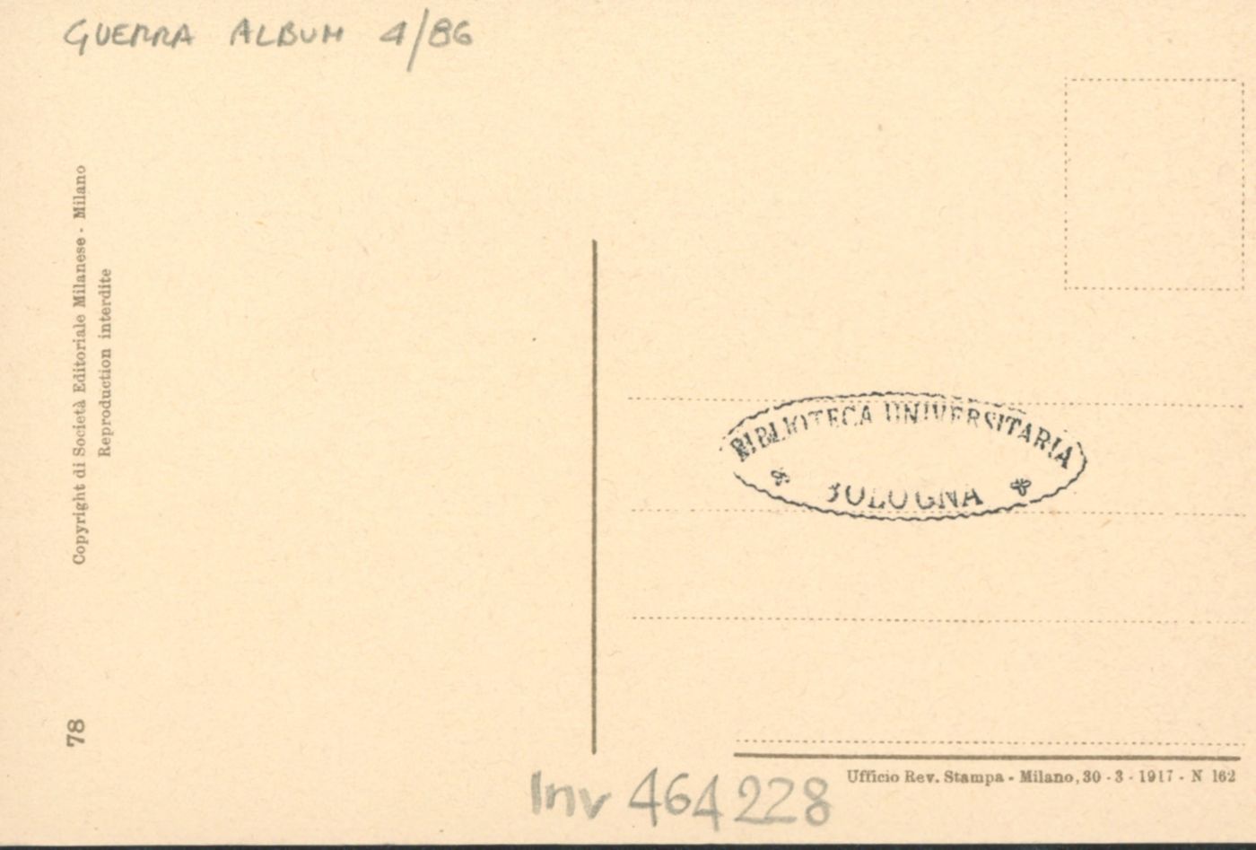 Note: Data dell'Ufficio revisione stampa di Milano sul verso in calce. - Testo in calce all'illustrazione: Joffre alla piccola Pace, È per il suo bene