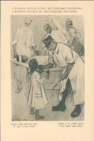 Descrizione: 78: L'Europa operata dal militarismo prussiano / Louis Raemaekers. - Milano: Società editoriale milanese, [1917]. - 1 cartolina illustrata: fototipia, b/n ; 140x90 mm.