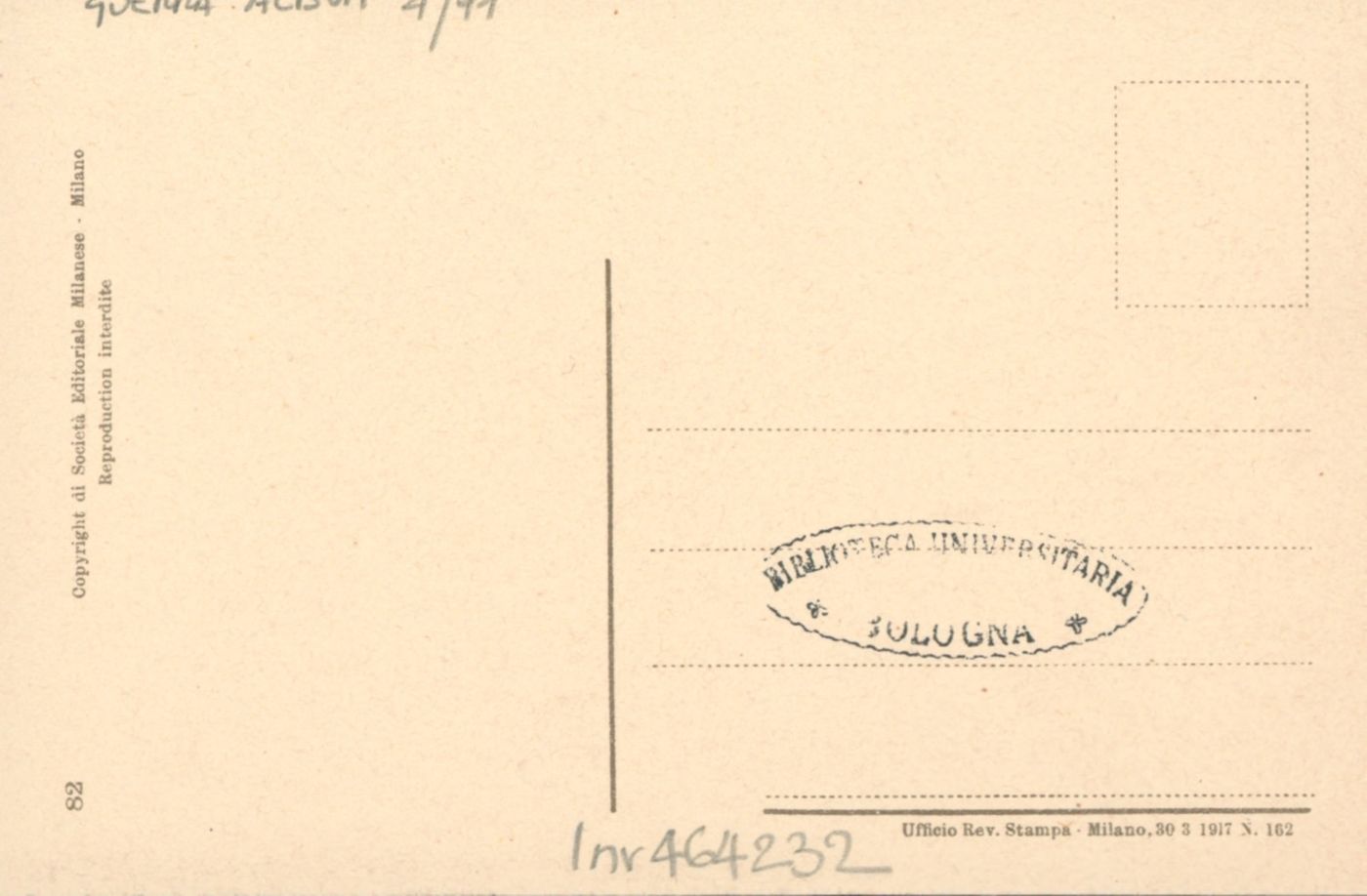 Note: Data dell'Ufficio revisione stampa di Milano sul verso in calce