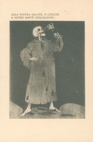 Descrizione: 82: Alla vostra salute, o civiltà! / Louis Raemaekers. - Milano: Società editoriale milanese, [1917]. - 1 cartolina illustrata: fototipia, b/n ; 140x90 mm.