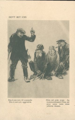 Note: Data dell'Ufficio revisione stampa di Milano sul verso in calce. - Testo in calce all'illustrazione: Dio è con noi: al comando Dio è con noi, aggredite