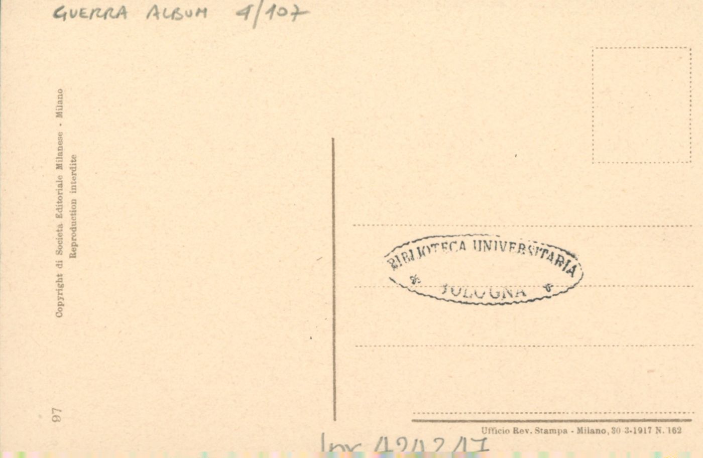 Note: Data dell'Ufficio revisione stampa di Milano sul verso in calce. - Testo in calce all'illustrazione: Il sacrificio che non fu gradito all'Eterno