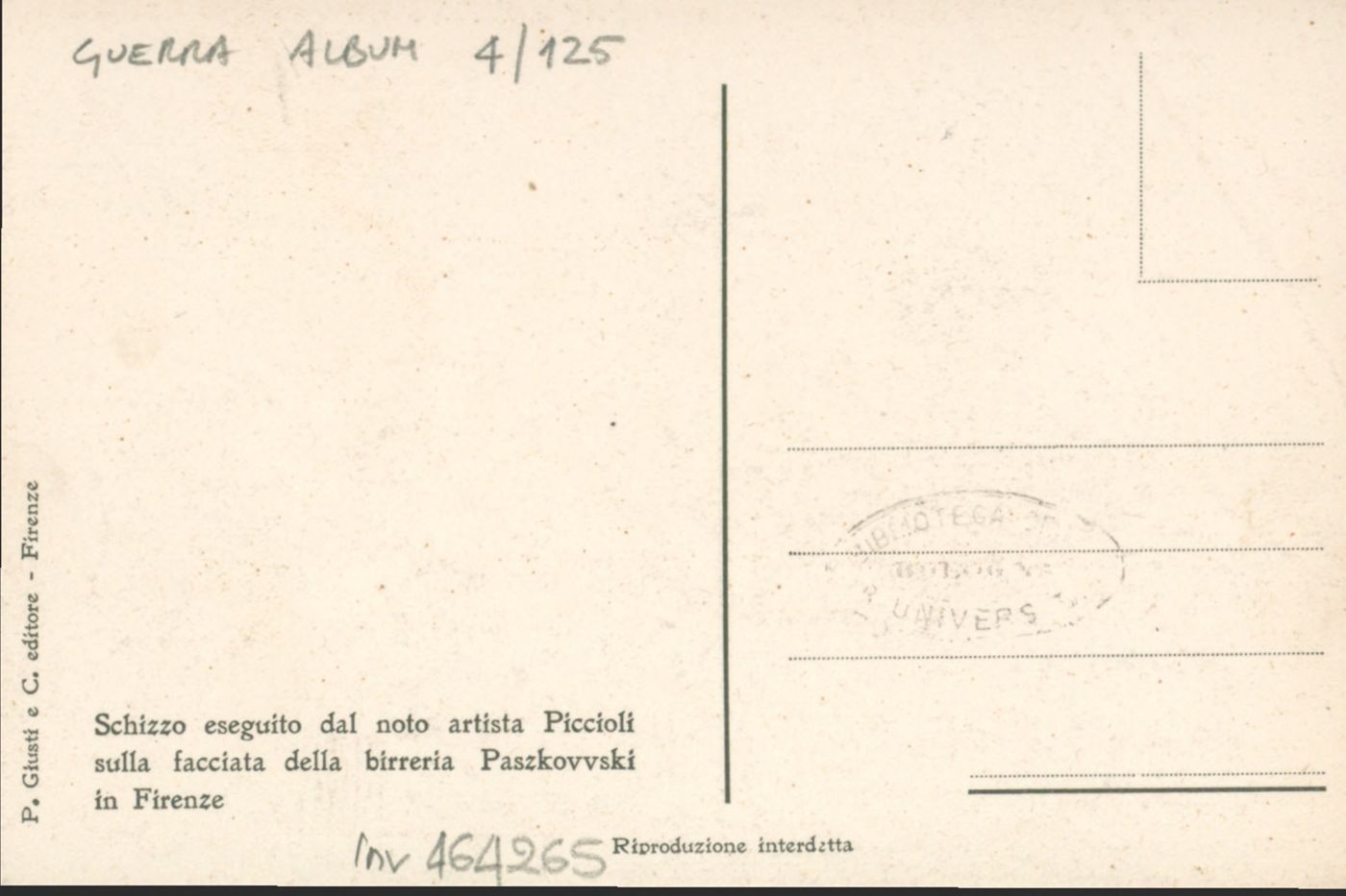 Note: Titolo attribuito dal catalogatore. - Sullo schizzo riprodotto le scritte: "La gran via; Memo, Momo Bepo" e " Chi lo toglie è tedescofilo"