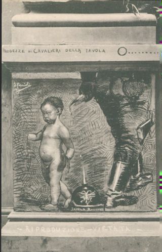 Note: Titolo attribuito dal catalogatore. - Sullo schizzo riprodotto la scritta "Prodezze di cavalieri della tavola O [i.e. rotonda]...". - Data dell'opera riprodotta
