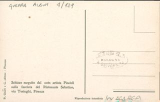 Descrizione: [Bambino accanto ad un elmo chiodato con le mani mozzate da un soldato prussiano]. - Firenze: P. Giusti e C., [1915]. - 1 cartolina illustrata: fotolitografia, b/n ; 140x90 mm.
