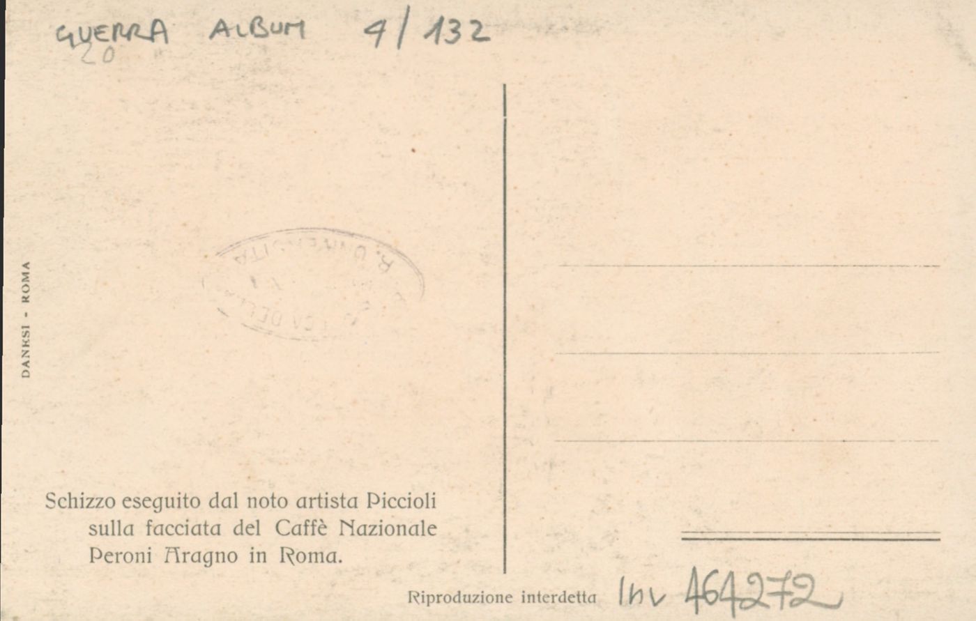 Note: Titolo attribuito dal catalogatore. - Sullo schizzo riprodotto scritta "Beppe e Nanni" e sul muro "Divieto di affissi[one] Art. 445 cod.e pen[ale].
