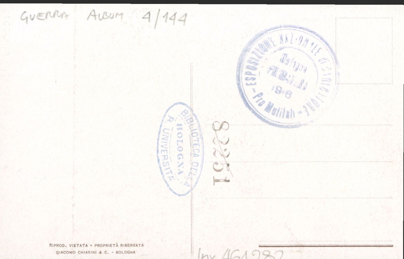 Note: Titolo in calce all'illustrazione. - Nome dell'Autore sull'opera riprodotta. - Data dal timbro di provenienza sul verso