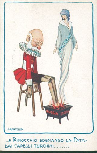 Descrizione: ... E Pinocchio sognando la fata dai capelli turchini... / [illustrazione di] A. Bertiglia. - [S.l.: s.n., 1915?]. - 1 cartolina illustrata: fototipia ; 139x89 mm.