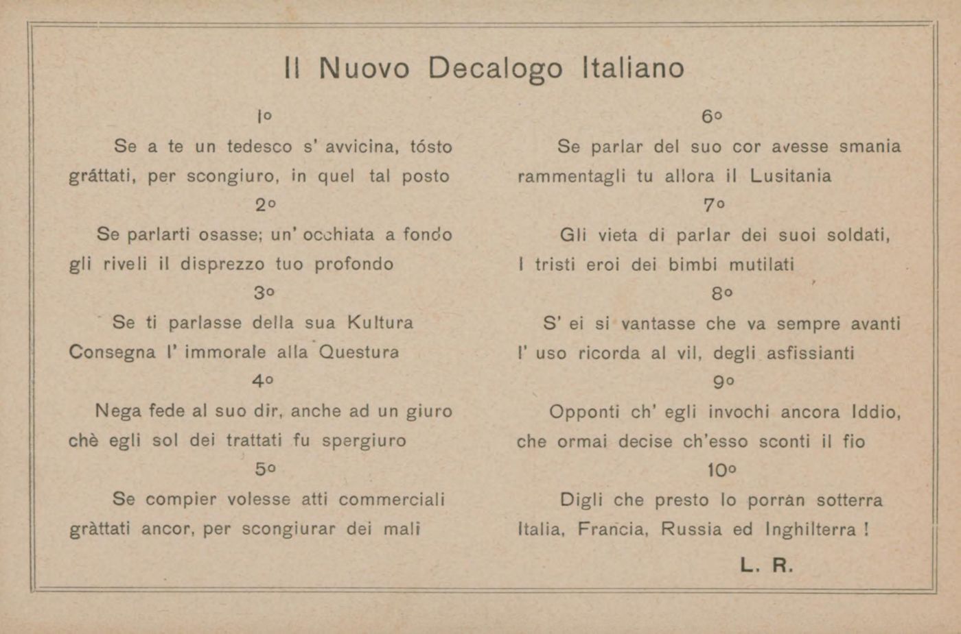 Il nuovo decalogo italiano
