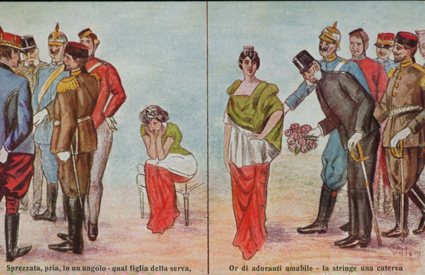 Sprezzata pria in un angolo - qual figlia della serva, or di adoranti amabile - la stringe una caterva