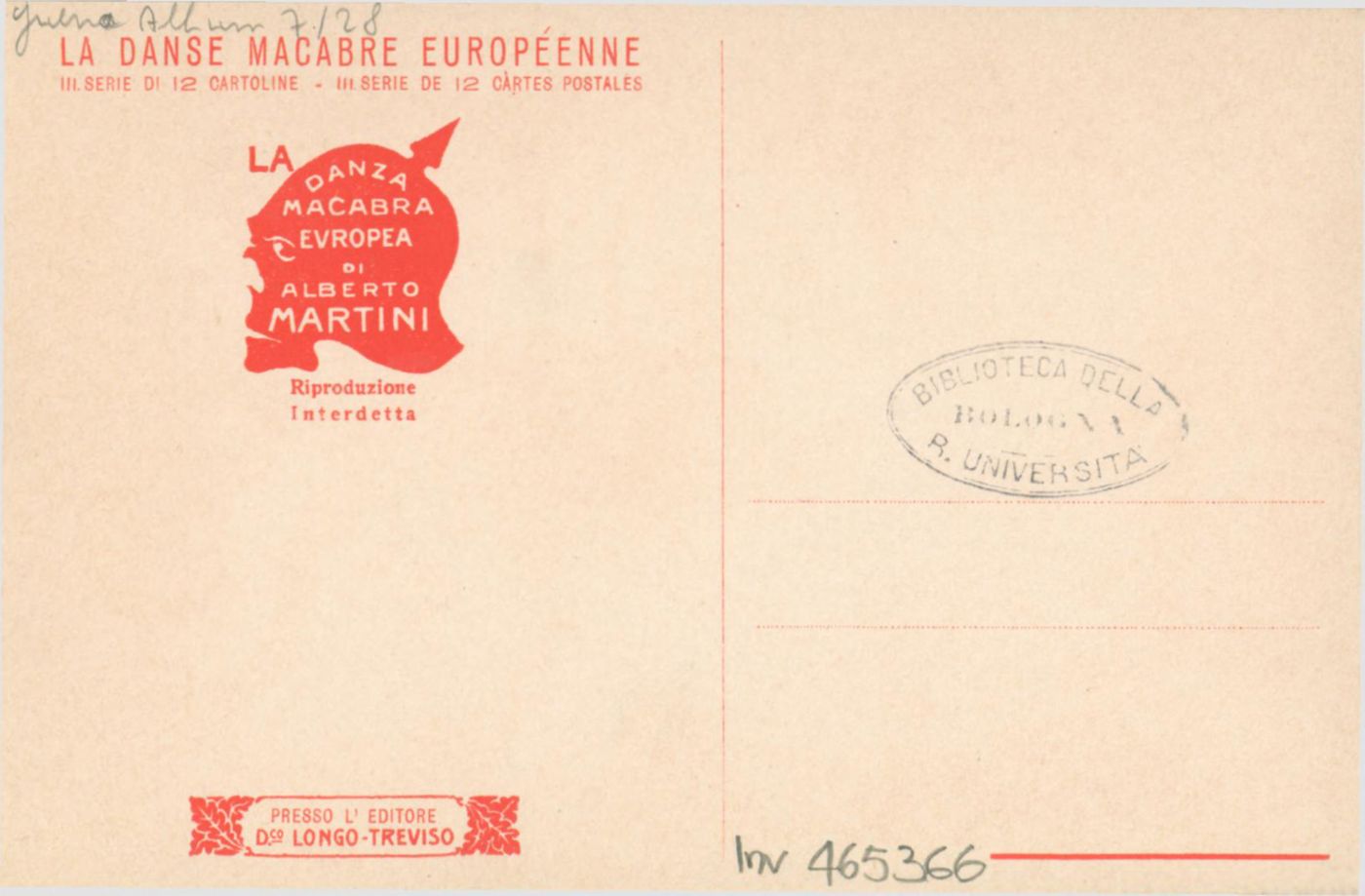 Descrizione: Il carnevale del 1915 / Alberto Martini. - Treviso: Longo, 1915. - 1 cartolina illustrata: litografia, color. ; 140x90 mm.
