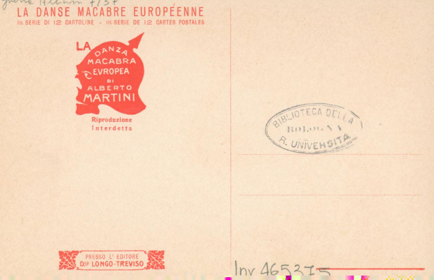 Descrizione: L'ultimo appello / Alberto Martini. - Treviso: Longo, [1915]. - 1 cartolina illustrata: litografia, color. ; 140x90 mm.
