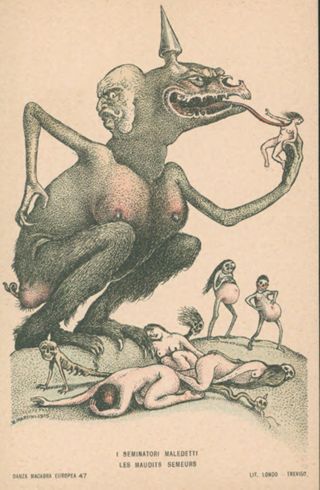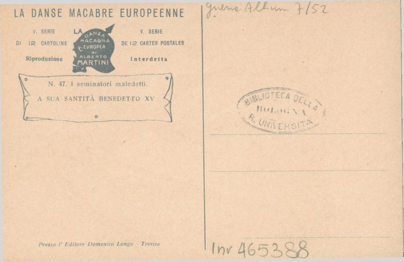 Descrizione: I seminatori maledetti / A. Martini. - Treviso: Longo, 1915. - 1 cartolina illustrata: litografia, color. ; 140x90 mm.