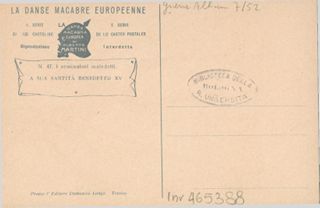 Note: Titolo in calce all'illustrazione in italiano e in francese. - Data sull'illustrazione. - Sul verso didascalia: A sua santità Benedetto 15. - Nell'illustrazione un mostro a due teste con il capo chiodato e le fattezze di Francesco Giuseppe 1. d'Austria divora e uccide le donne