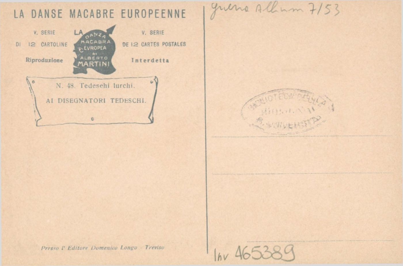 Note: Titolo in calce all'illustrazione. - Data sull'illustrazione. - Sul verso didascalia: Ai disegnatori tedeschi. - Nell'illustrazione volti mostruosi col capo chiodato