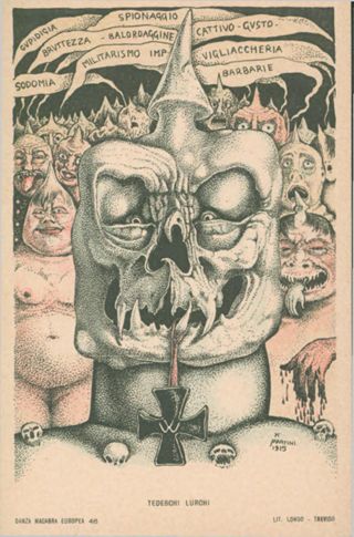 Descrizione: Tedeschi lurchi / A. Martini. - Treviso: Longo, 1915. - 1 cartolina illustrata: litografia, color. ; 140x90 mm.
