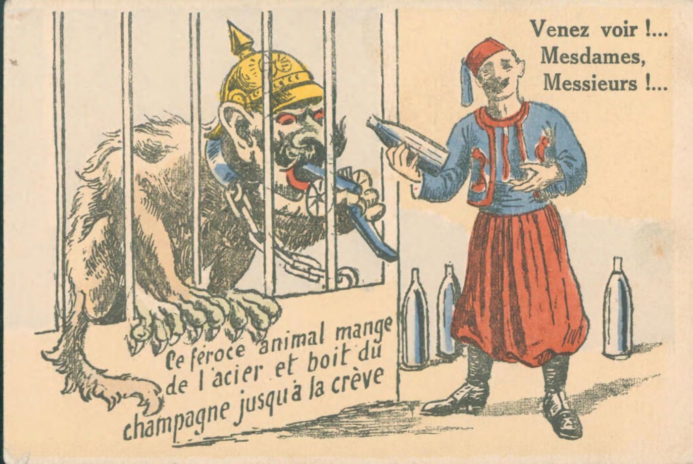 Venez voir! mesdames, messieurs! Ce feroce animal mange de l'acier et boit du champagne jusq a la crève