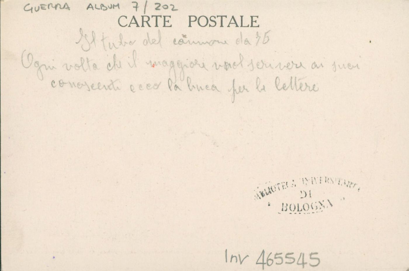 Le tube du canon de 75 : de fois que M. le Major voudrait ecrire a va connaissance voici la boite aux lettres