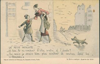 Un petit patriote: Eh bien, tu es content d'etre rentrè à l'école? Oui, mais je serais bien plus content de rentrer dans les Boches