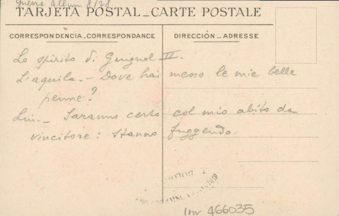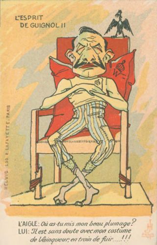 L'esprit de Guignol 2.: l'aigle: o§ as-tu mis mon beau plumage? Lui: il est sans doute avec mon costume de Vainqueur; en train de fuir