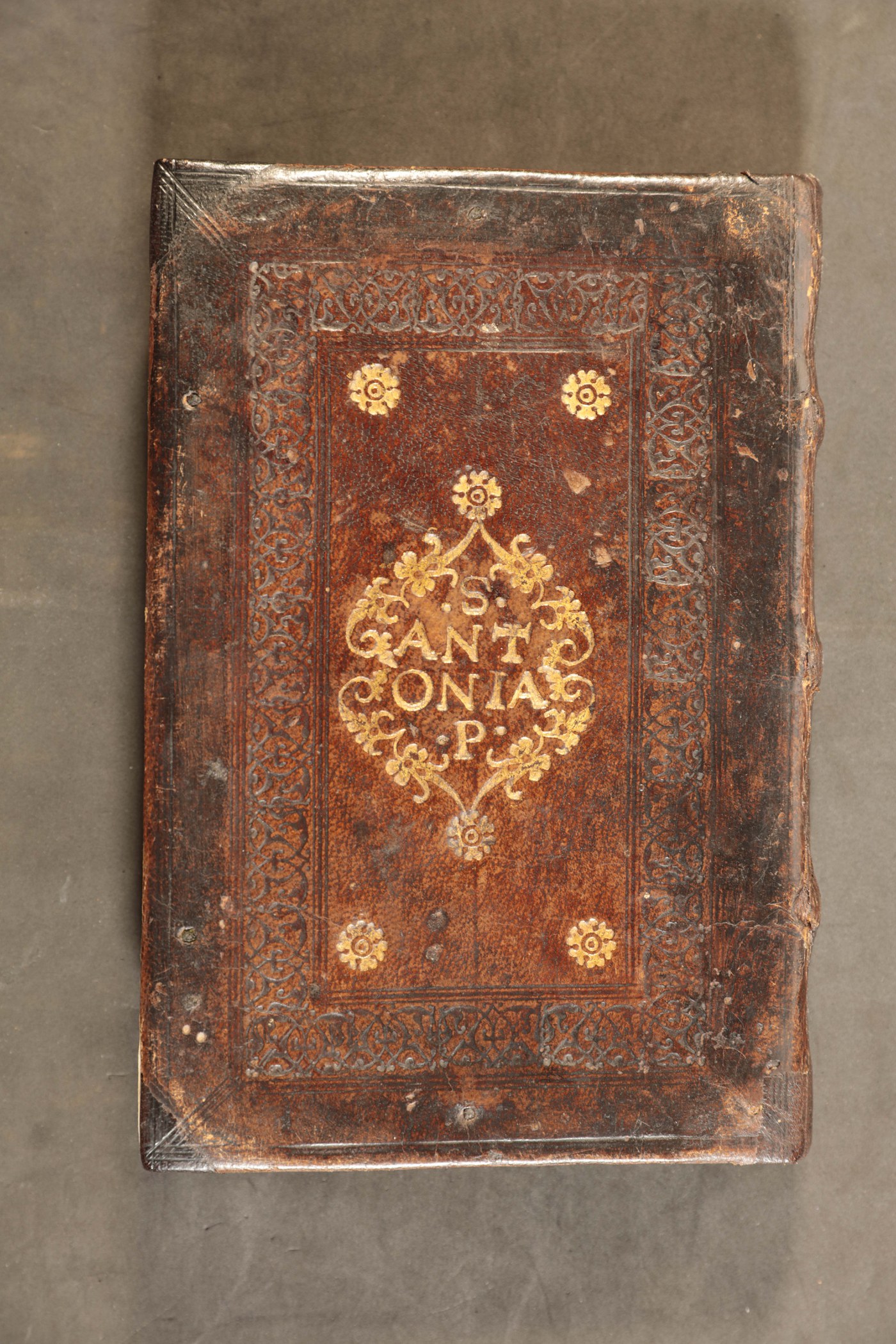 I fregi e la bibliografia consentono di assegnare la legatura al secondo quarto del XVI secolo, eseguita a Bologna dal legatore alla vignetta del quale questa Istituzione possiede alcuni esemplari. In evidenza, i tagli dorati incisi, il frontespizio, le tavole calcografiche e il testo stampato in rosso e in nero.