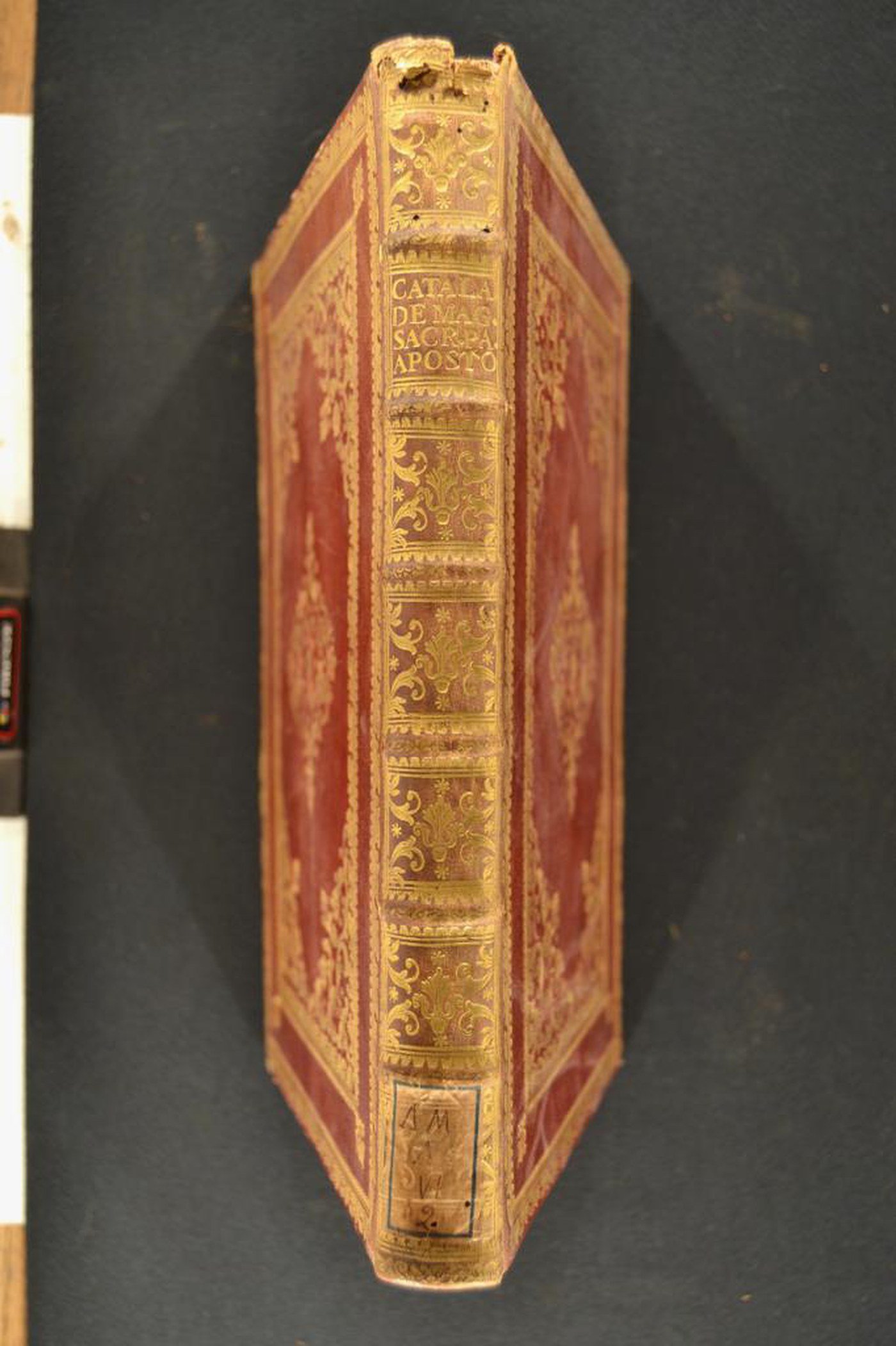 I fregi e le carte di guardia sbruffate inducono ad assegnare la legatura al terzo quarto del XVIII secolo eseguita a Roma. In evidenza i tagli dorati brillanti.