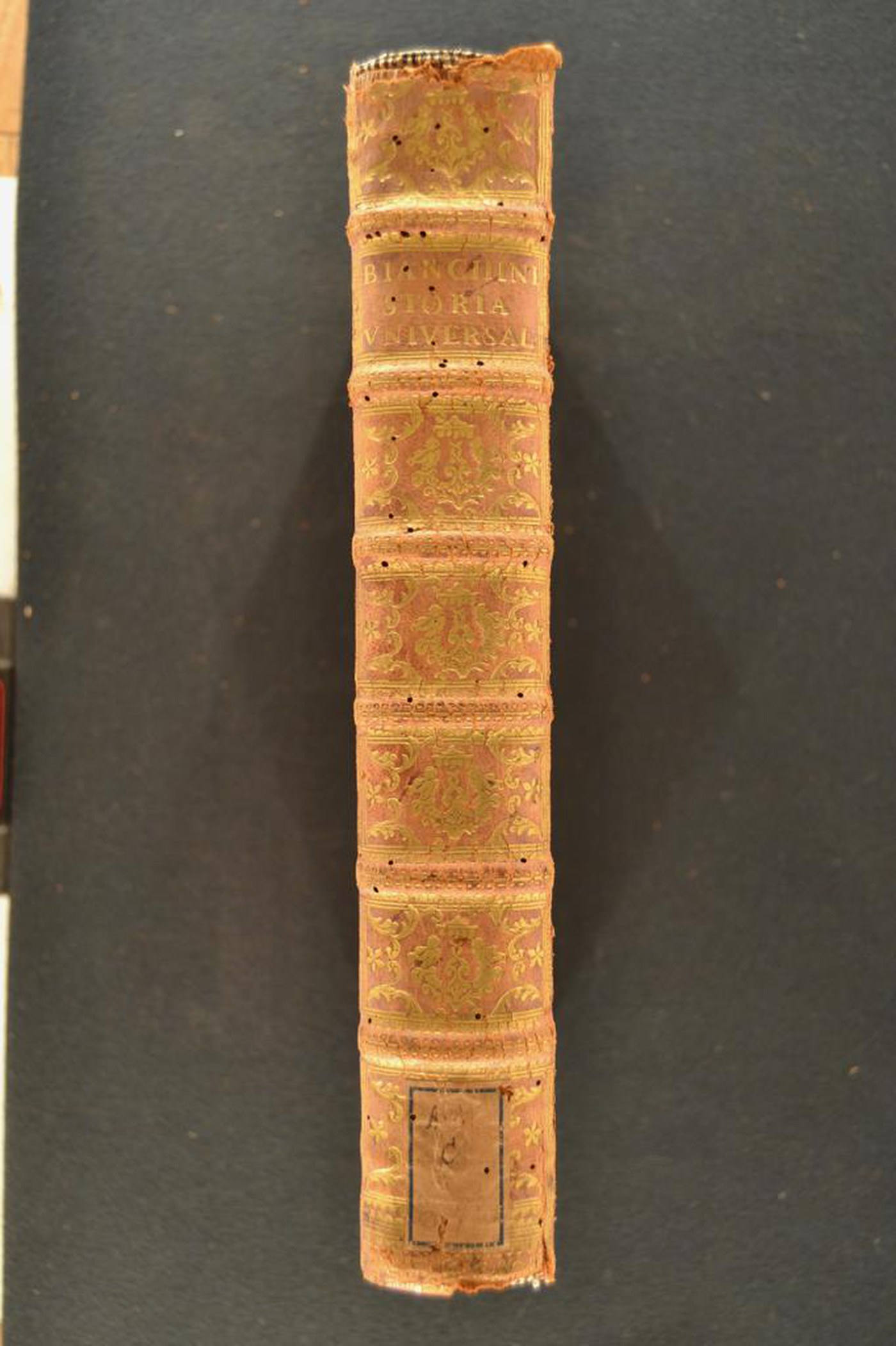 I fregi, le carte sbruffate e le note tipografiche inducono ad assegnare la legatura alla metà del XVIII secolo, eseguita a Roma. In evidenza i tagli dorati brillanti incisi e le tavole calcografiche.