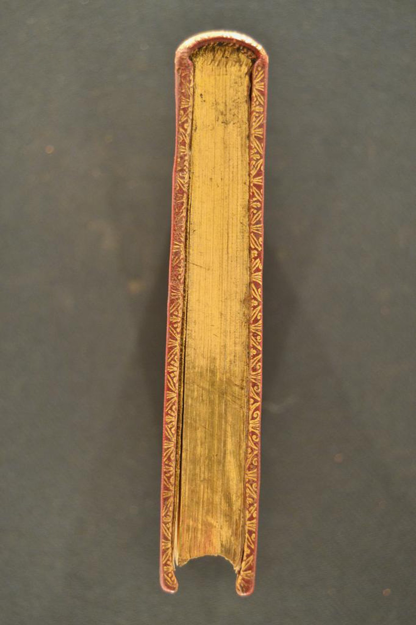 I fregi e le note tipografiche consentono di assegnare la legatura al terzo quarto del XVIII secolo, eseguita nel Veneto. In evidenza i tagli dorati brillanti incisi e la tavola calcografica.