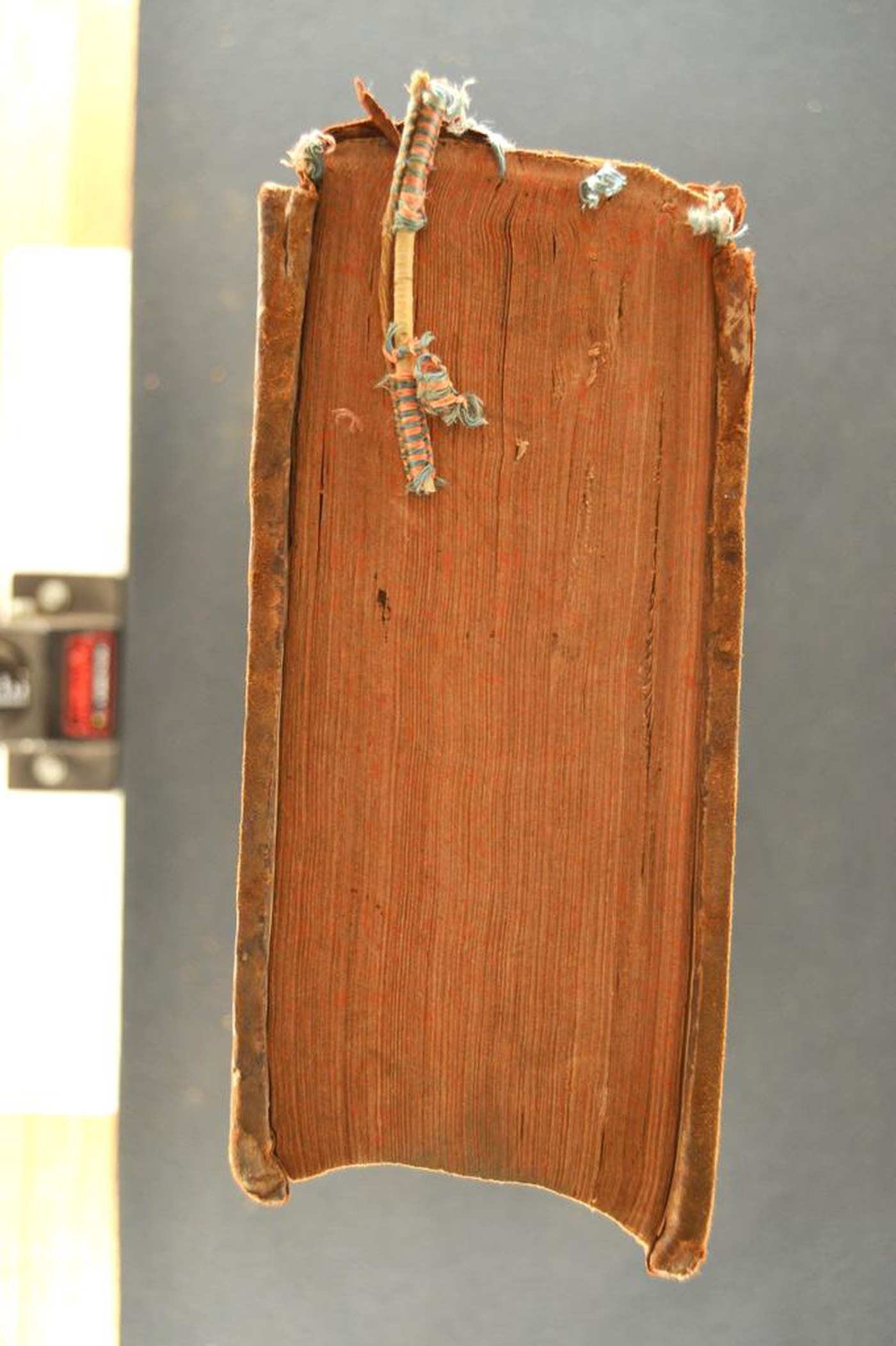 Le alette in foggia di trapezio e le note tipografiche inducono ad assegnare la legatura alla prima metà del XVII secolo, eseguita in Francia. In evidenza i simboli del possessore impressi in epoca posteriore al confezionamento del manufatto considerata la diversa tonalità della doratura rispetto a quella circostante e i capitelli ancora vividi, in posizione protetta al piede. Paul Petau, consigliere del parlamento di Parigi, possessore di una libreria costituita da oltre 1000 manoscritti latini e francesi e di un ricco gabinetto di medaglie, ereditati dal figlio Alessandro, succedutogli nella medesima carica. Alla scomparsa, i manoscritti furono acquistati dalla regina Cristina di Svezia che li donò al Vaticano e i testa a stampa venduti nel 1722 all’Aia. Nel frattempo diversi volumi della collezione sono pervenuti alla biblioteca nazionale di Francia a Parigi. La biblioteca civica di Ginevra possiede un volume provvisto delle medesime armi.