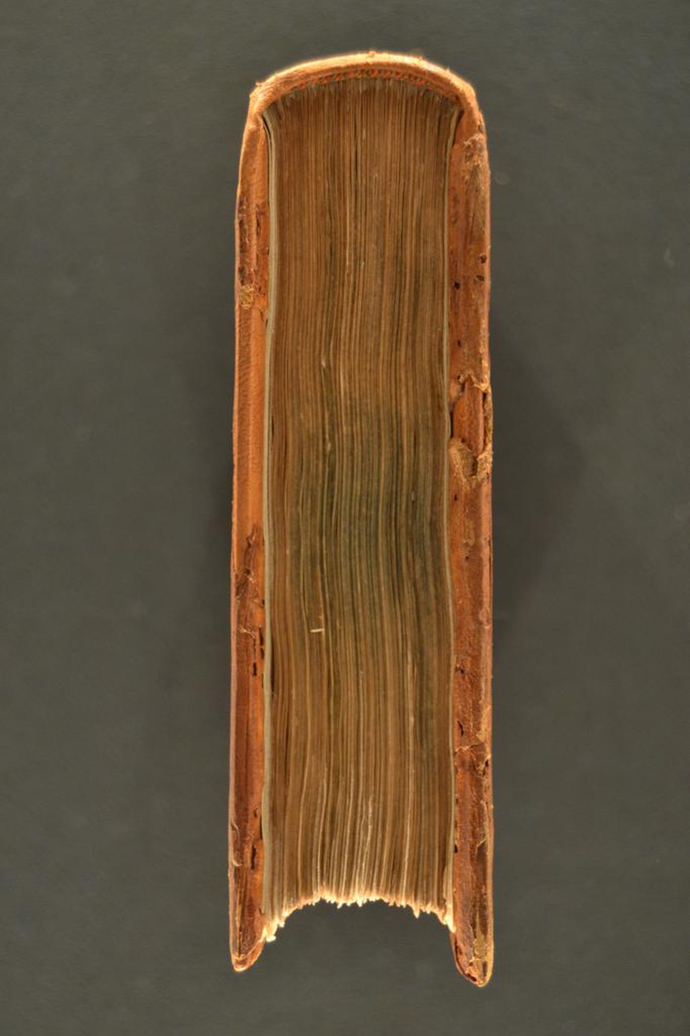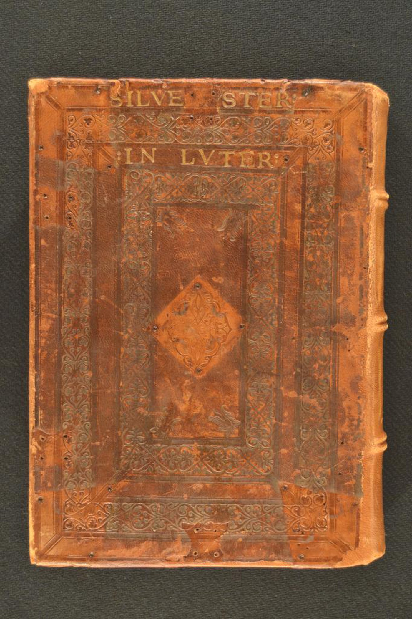 I fregi, il titolo dell’opera al piatto posteriore, l’iscrizione inchiostrata e le note tipografiche consentono di assegnare la legatura pubblicata alla prima metà del XVI secolo, eseguita a Bologna dal secondo legatore di S. Salvatore attivo nel periodo 1525- 1535. In evidenza i supporti lignei smussati, l’impianto ornamentale completamente realizzato successivamente parzialmente coperto dalle ferramenta, le caratteristiche protomi canine note in almeno 67 varianti felsinee, pure marginalmente adottate nelle produzioni realizzate a Bergamo, Padova e il frontespizio illustrato con nota di possesso.