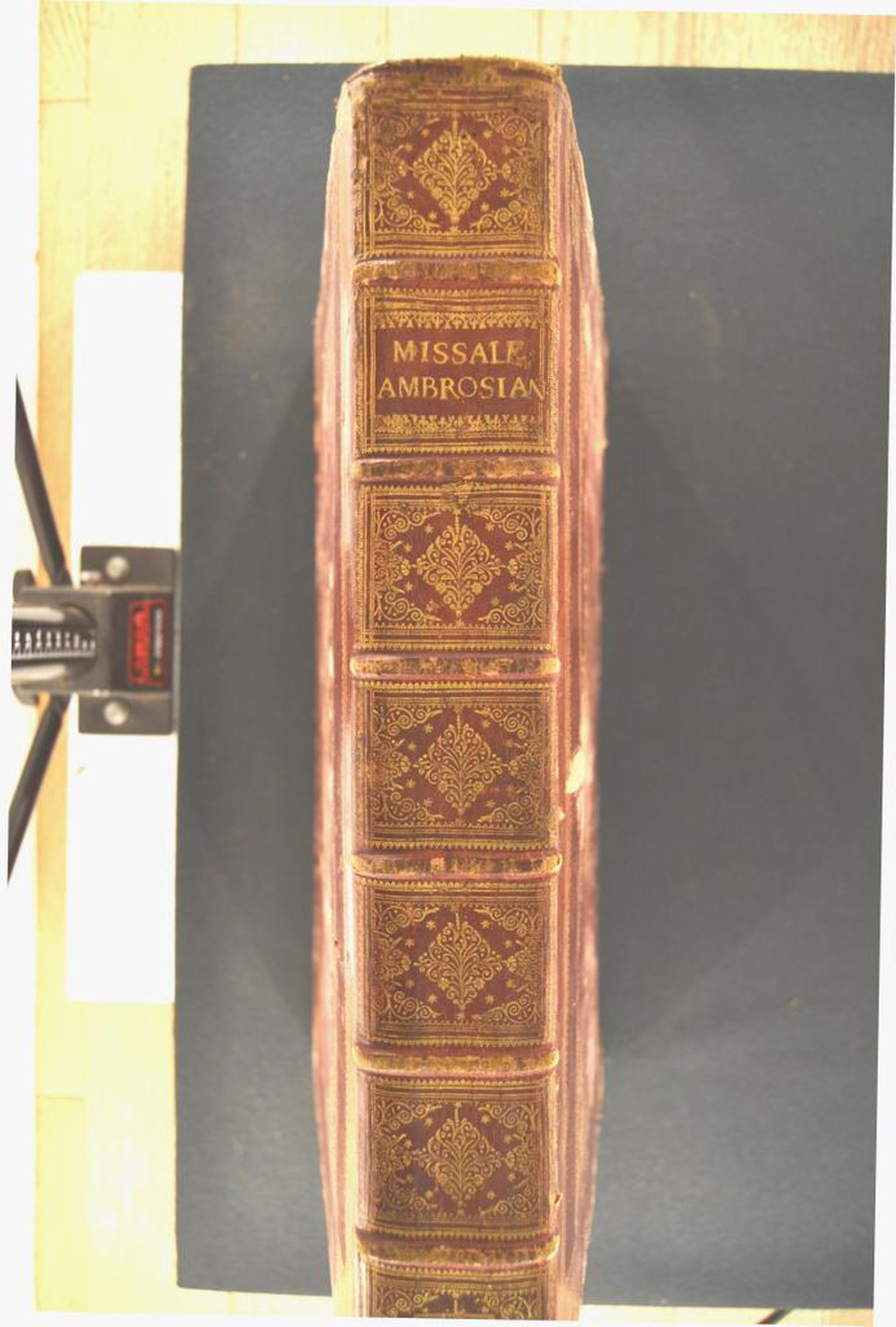 Chiesa cattolica, Missale Ambrosianum nouissime Ioseph cardinalis Archinti archiepiscopi auctoritate recognitum, Mediolani : apud Beniamin, & fratres de Sirturis, impressores archiepiscopales, 1712, 412x265x74 mm.