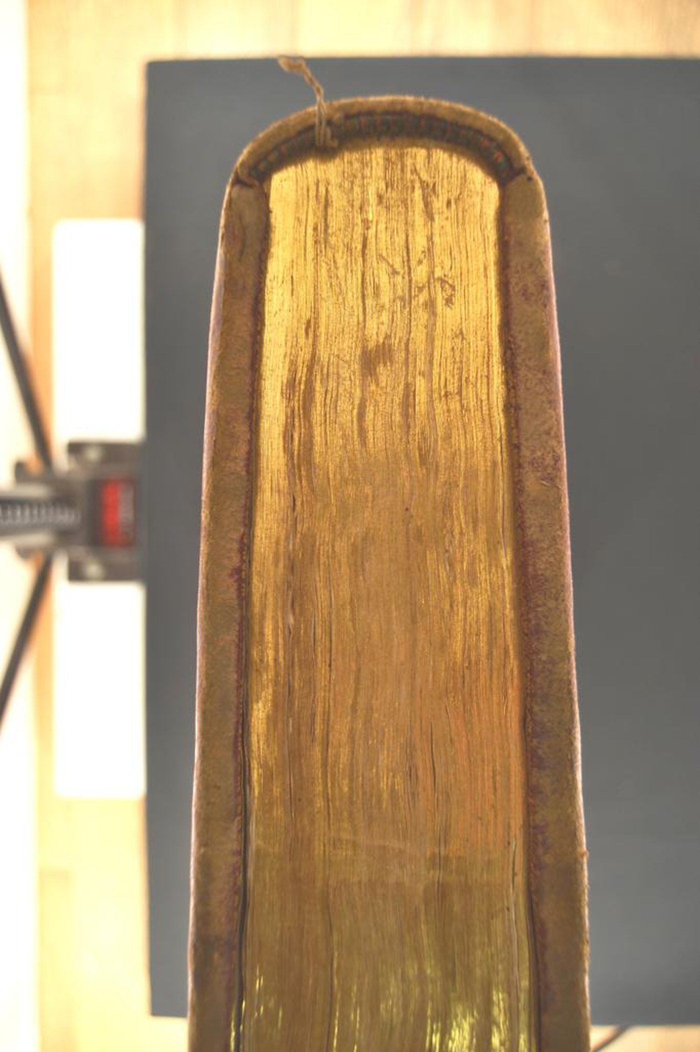 Il motivo fiorito che ricorda quello adottato dall’ignoto maestro del mazzolino fiorito attivo per la libreria del cardinale Girolamo Casanate (1620-1700) e per la Biblioteca vaticana e le note manoscritte consentono di assegnare la legatura, riferibile a Benedetto Odescalchi, (arcivescovo di Milano dal 1712 al 1740, creato cardinale nel 1713), al primo quarto del XVIII secolo, eseguita a Roma. Per il prelato quindi diventato pontefice, si annoverano manufatti pure prodotti nell’Urbe, caratterizzati da coppie di cornici concentriche e del genere post-fanfare prodotti dalla bottega vaticana Andreoli e a mosaico per applicazione. In evidenza la coppia di mostri fantastici addossati, le carte di guardia goffrate realizzate tramite impressione a caldo di matrice calcografica sulla foglia dorata, precedentemente applicata alla carta bianca, i tagli dorati incisi e la tavola calcografica.